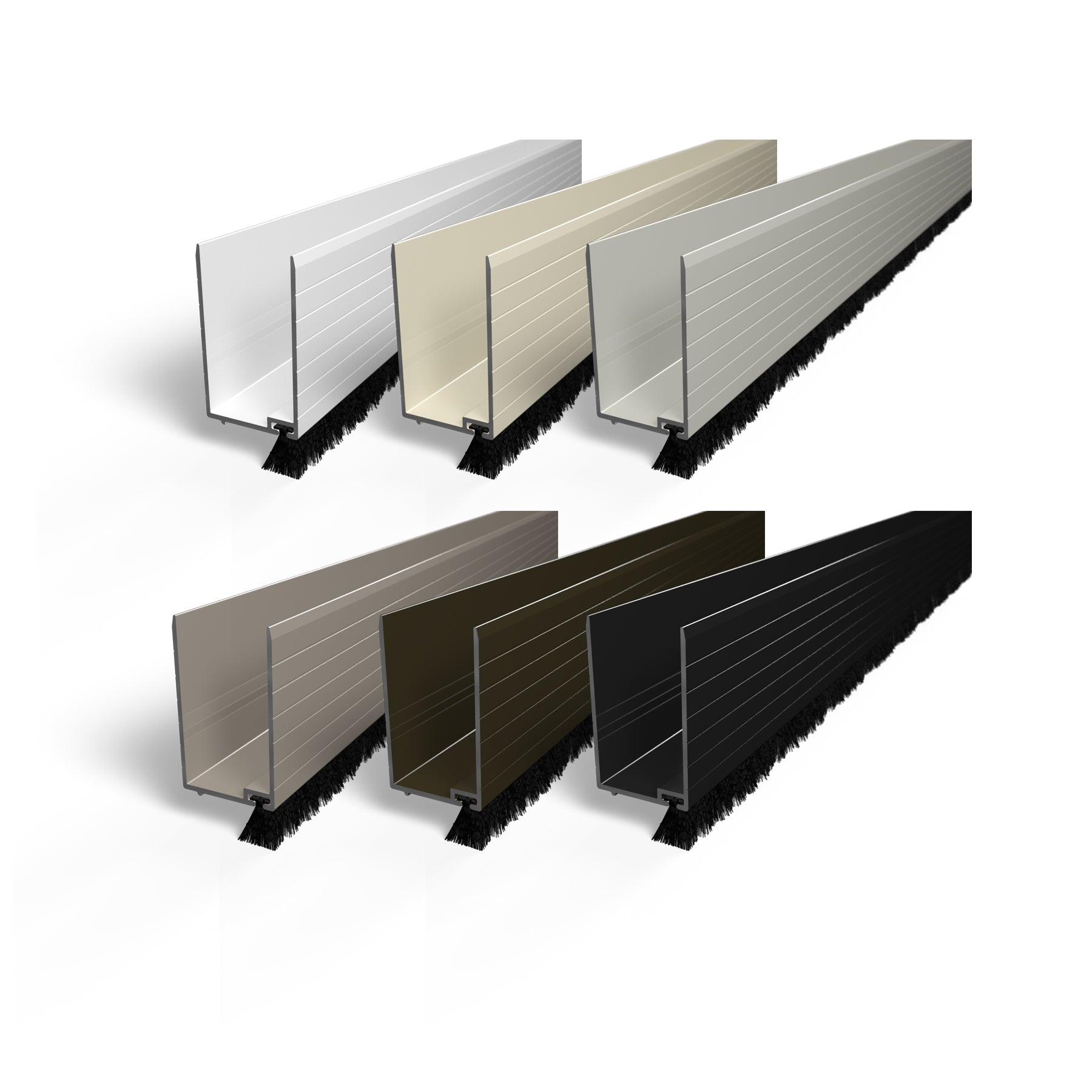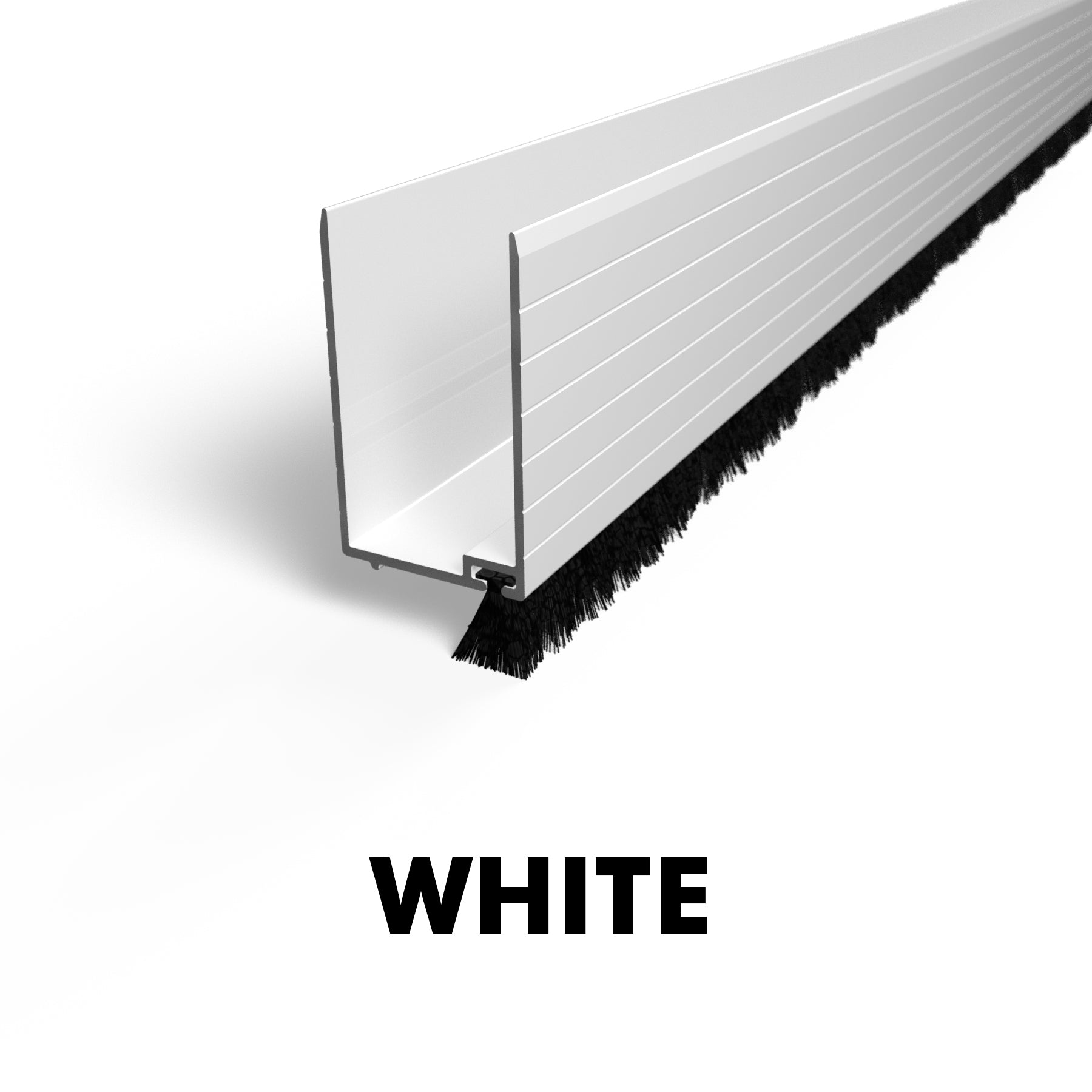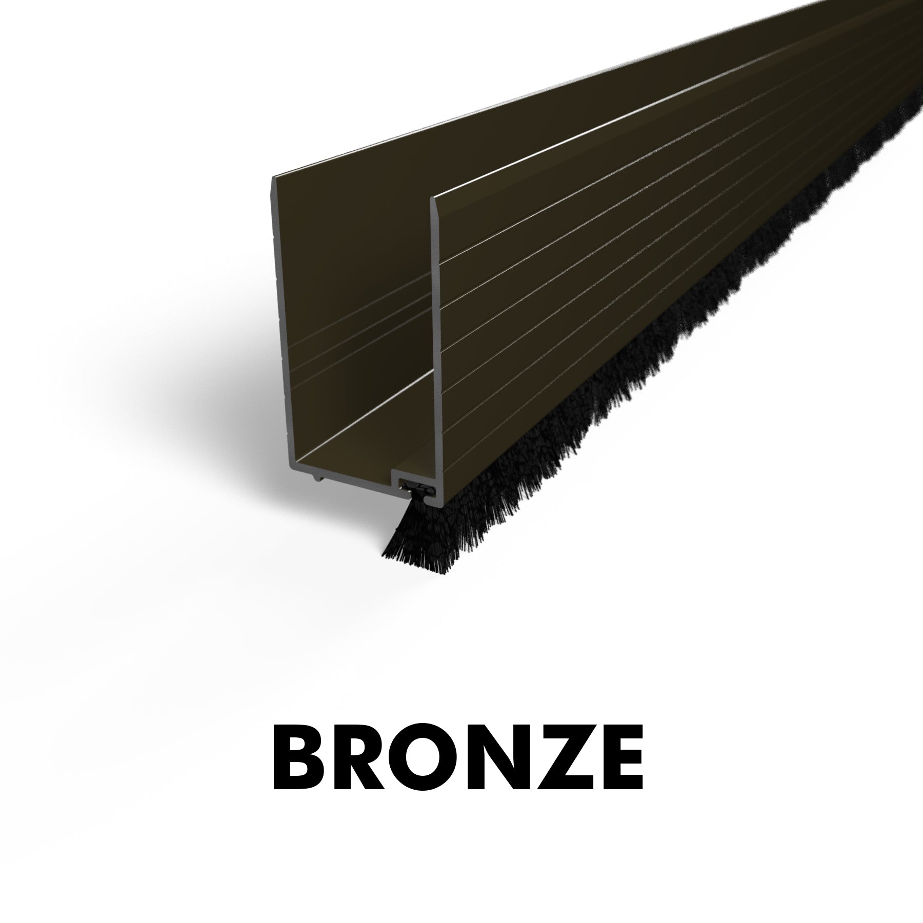 Aluminum powdercoated U channel providing an adjustable height wool pile sweep to keep bugs out. Fits 1" wide door frames.