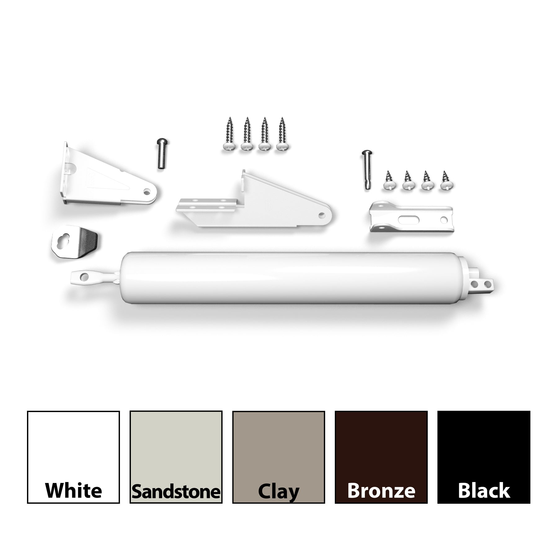 Replacement closer tube kit, for In-Swing or Out-Swing applications. Includes all mounting hardware, including standard and corner mounting brackets.